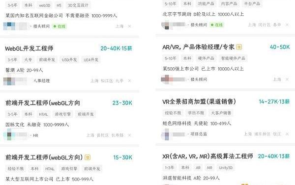 在整體就業市場“遇冷”的情況下,卻出現了不同的聲音,很多企業和招聘網站元宇宙相關崗位需求大增,薪資也遠超其他應屆生職位。