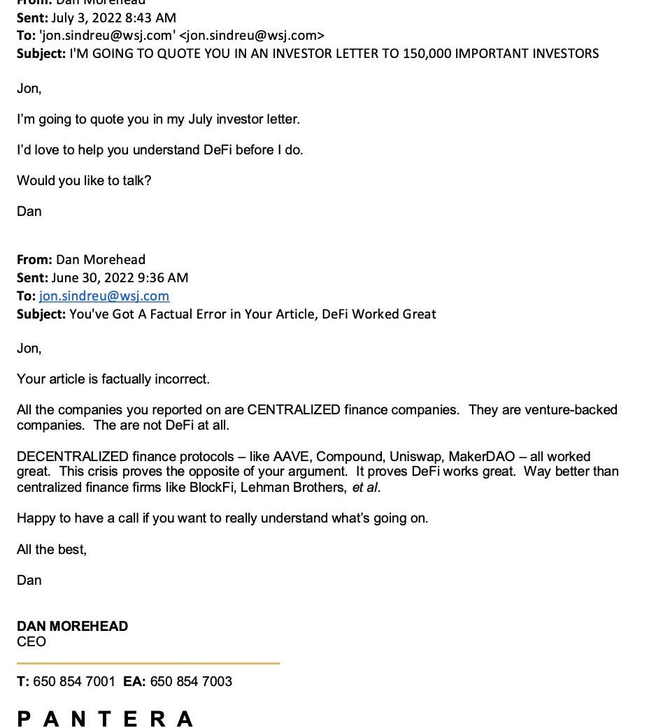 去中心化金融協議——如Aave、Compound、Uniswap、MakerDAO——都在24×7完美運作。這場危機恰恰證明DeFi運轉得很好,比Celsius、BlockFi、雷曼兄弟等中心化的金融公司要好得多。