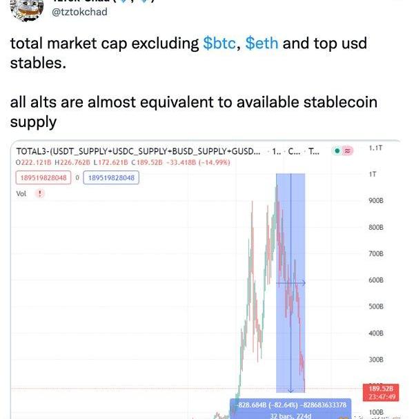 聽說3AC損失了大部分的錢,被迫變賣所有的東西,這是一個非常難以接受的事實。SuZhu都做不到,更何況是我們?毫無疑問,最近的大量拋售可以歸因于基金和潛在的贖回,部分原因是alt的整體實力相對較強。主力在一周內下跌超過50%簡直是要瘋的節奏,奇怪的是alt沒有完全跌落懸崖。大多數alt的價格已經從ATH下跌了接近90%,而且有相當一部分已經達到了超賣水平。