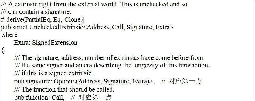 ???在Substrate中的交易不再稱為Transaction,而是稱為了Extrinsic,中文翻譯就是“外部的;外表的;外源性”,意味著被稱為Extrinsic的概念,對于區塊鏈而言是外部的輸入。這種定義脫離了本身“交易”的范疇,而是在鏈的狀態的角度下,認為交易及類似概念是一種改變狀態的外部輸入。