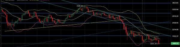以太坊走勢和大餅相同,但比大餅弱,凌晨一根大陰線跌破1700強支撐,最低下探至1655一線,恭喜跟上昨日思路的朋友,空單獲利一百點,多單也有小幅獲利,目前幣價在1670附近震蕩,四小時級別跌破布林帶下軌,沿著下軌運行,布林帶開口向下中軌下移,MACD空頭小幅放量雙線死叉,KDJ三線拐頭,綜合來看依舊是空頭占優勢,目前處于低位震蕩不能盲目追空,日內思路建議反彈高空為主,1700-1030空,目標看1650-1600