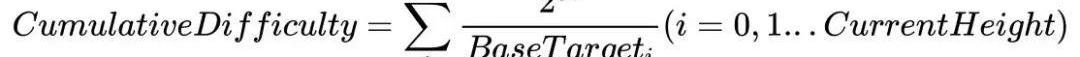 通過難度累計這一指標直觀的反映了當前鏈上使用存儲資源的數量多少,從而讓誠實的節點選擇難度累計值最大的一條鏈。