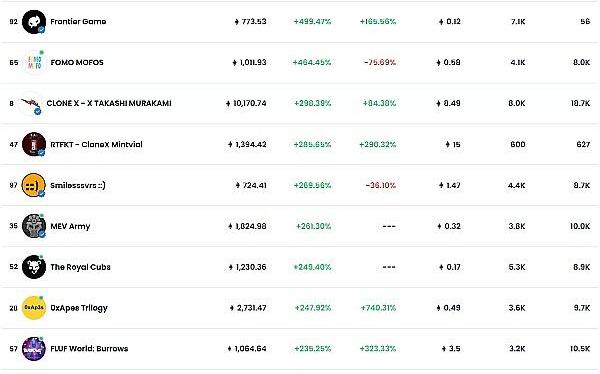 當然,以上的總結也有片面,只是我最近觀察到部分漲起來的NFT。