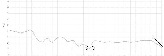 2.?從恐慌及貪婪指數來看,呈現為極度恐慌的態勢,靠近歷史上的低點10位置附近;