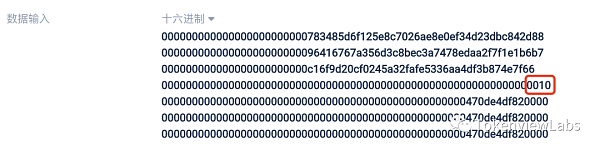 按照圖上順序,當數到第11個地址的時候,發現值是“10”。這個值會被認為是地址列表中的第11個地址,然而事實上是表示轉移數額的列表長度。那么按照第三行的指示,應該向 16 個地址轉入,合約會把“0x10”當成地址繼續執行轉賬操作,向地址“0x10”轉入 0 個 ETH。