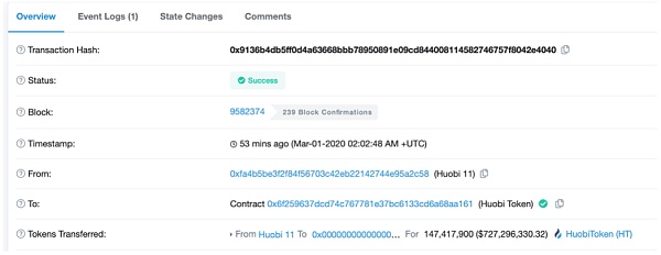 火幣行動也非常迅速,鏈上數據顯示,3月1日上午,以太坊鏈上147,417,900枚HT被銷毀,價值約7.27億美元。而此前在率先宣布將銷毀全部未流通平臺幣的平臺,至今未見銷毀動作。