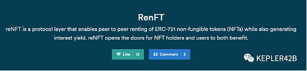 這一模型同樣適用于藝術和數字領域等非現實領域。如今,ReNFT正試圖通過一個針對NFT租賃的點對點市場來實現這一目標。與加密中的大多數DeFi協議一樣,目前這是一個超額抵押的解決方案;借款人可以通過存入與NFT貸款市場價值相等的抵押品以及額外的租金來租用NFT貸款。也就是說,EIP-2615提議在協議級別上進行了改進,它本身支持ERC-2615代幣內部的租賃功能,不再需要保證金。