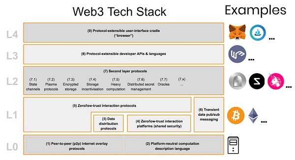 上圖:Web 3 堆棧的不同層以及對應的例子。圖源:readthedocs.io