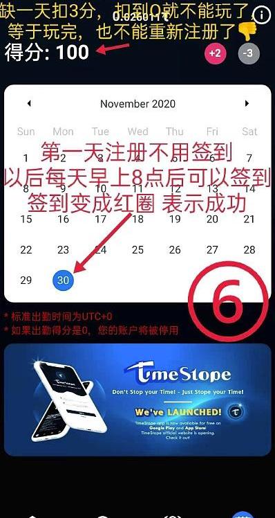 每天八點后點界面右下角的日歷圖標進行簽到,到時間后日歷上會出現“地球儀”,點它,當天的日期點上紅點,簽到成功。同時獲取積分,初始積分100分,每簽一次+2分,漏簽-3分…