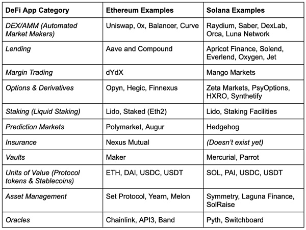 我之所以選擇這兩個生態系統來關注,是為了顯示在兩個不同的底層協議上構建的DeFi應用程序的廣度。我也相信Solana是最有趣的新Layer1協議,因為它的高交易吞吐量(每秒50K以上的交易),亞秒級的延遲和交易確認時間,以及在Solana協議之上構建DeFi應用程序的快速增長的開發者生態系統。