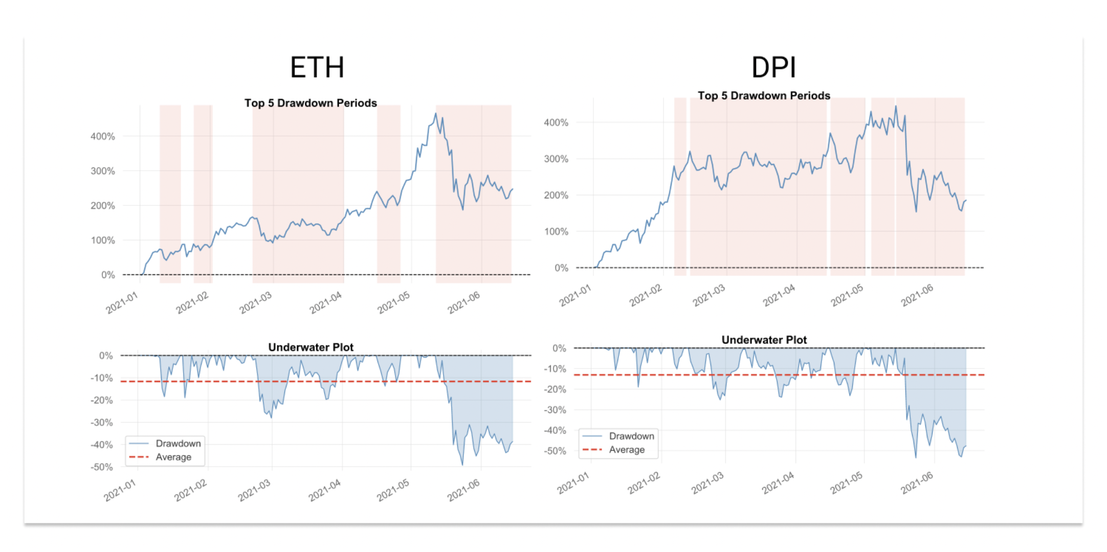 ETH的最大跌幅達到約49%,而DPI跌幅則達到了52%。