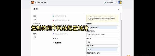 2.在Metamask錢包配置ELA側鏈網絡及火幣網絡
