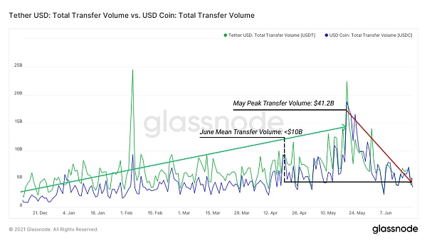 用戶增長(地址增長)保持相對穩定,從4月份的18%到5月份25%,環比增長略有放緩。6月份,用戶增長有望達到約12%。高用戶增長對持有者來說可能是一個看漲的指標,因為它是采用的關鍵指標,也是識別是否存在邊際Token買家的關鍵指標。雖然總用戶數的增長仍然強勁,但增長的百分比曲線正在趨于平緩。