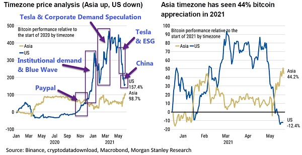 另外,越來越多的機構開始采用比特幣,這可能意味著宏觀經濟學在最近的拋售中發揮了作用。2021 年 5 月 12 日,美國的消費者價格指數 (CPI) 顯示較上年同期上漲 4.2%,這是自 2008 年 9 月以來最高的水平。鑒于市場過熱的跡象,盡管糟糕的美國就業數據緩解了這種跡象,美聯儲的會議紀要暗示,他們開始考慮縮減購債規模。這導致了美元實際收益率上升+9個基點,盡管傳統金融市場保持相對平靜。市場已經知道,由于 COVID-19 的基數效應 (base effect) 較低,通脹數字很高。