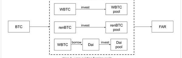 該階段引入了farmBTC的概念,該階段目的是為第三個階段鋪墊。farmBTC是一種合成資產,主由WBTC、imBTC、renBTC等構成,類似于yCRV由USDc、Dai、USDT等組成等,一籃子不同的BTC作為底層資產,這將顯著得降低單一底層失效的風險。