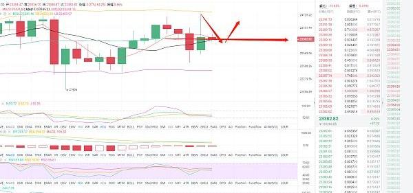 比特幣行情分析:在今天的白盤行情中,比特幣早間破位上行,價格最高上至24000并未企穩,隨后行情承壓回調,上行力度逐漸減弱,一直處在震蕩行情中,兩次觸底23350附近位置多次反彈最高未過23700。目前晚間更是跌破23300一線支撐,再度走出一波600點的跌幅,低位觸及22700一線才開始反彈,目前價格在23500位置附近波動。