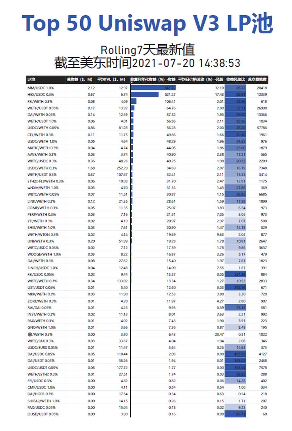 附最新 Uniswap V3 Top 50 LP Rolling 7 天收益