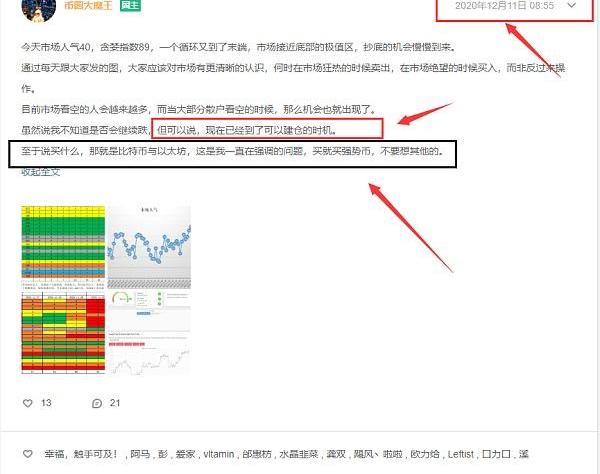 綜合來看,現在屬于籌碼兌現期,對于追漲是不建議的,在回調階段買入是可行的,但一定要控制好倉位。市場大漲突破的概率偏低,持幣可以在高位止盈。至于說做空,那么一定要學會試倉,任何的逆市操作,一定預設止盈止損位,不然虧損的概率會變大。有投資的問題,可以關注公眾號:幣圈大魔王1