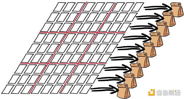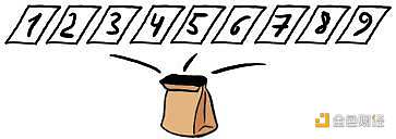 接下來怎么讓 Bob 確認這就是正確的解呢?很簡單,由 Bob 隨機選擇行、列或是粗線宮中的一種進行驗證,假如選擇行,則將這 81 張卡片按 9 行分別放到 9 個麻布袋中,搖勻并確保卡片次序打亂。