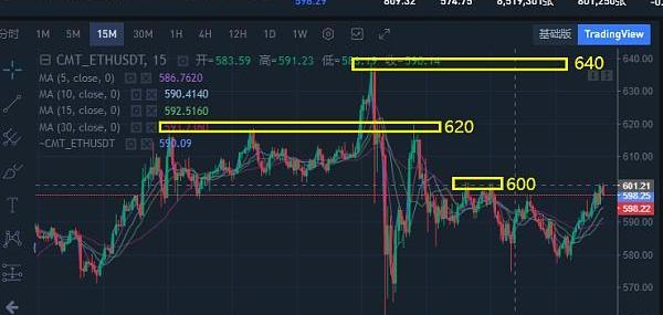 12.9以太行情分析: ??以太昨日白盤一直在區間震蕩,最高反彈至595附近后,凌晨大型三角區間破位后,幣價持續下探,最低抵達542一線,跌幅53個點.