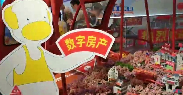 這位穿著黃背心、禿頭、啤酒肚的中年地產老板,也就是不禿花園小區樓盤的開發商“禿力富”先生舉著一個“數字房產”的牌子立在一邊,親自代言“禿力城”的數字房產。
