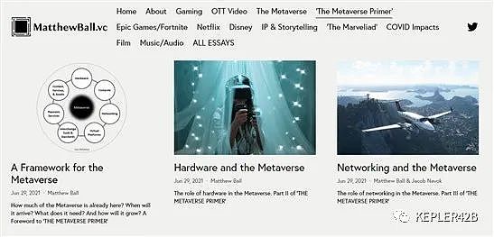 Matthew Ball發表的系列文章詳見:https://www.matthewball.vc/the-metaverse-primer