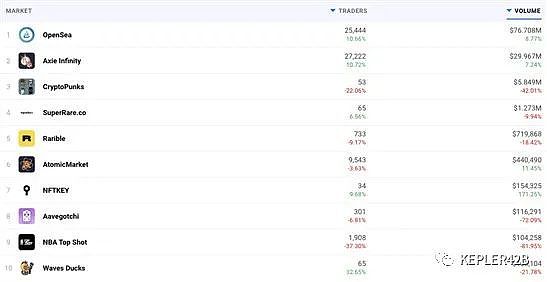 DappRadar的NFT市場交易量詳見:https://dappradar.com/nft/marketplaces