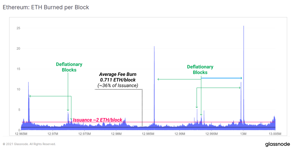許多例子表明已經有凈通貨緊縮區塊被挖掘出來。在高網絡使用環境中,特別是在向權益證明(PoS)的低發行狀況過渡之后,完全有可能通過銷毀機制的通貨緊縮在結構上銷毀量高于發行量。