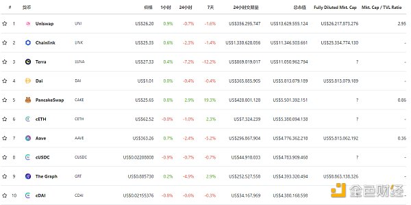 鎖倉量排名前十的借貸平臺 排名來源:Debank