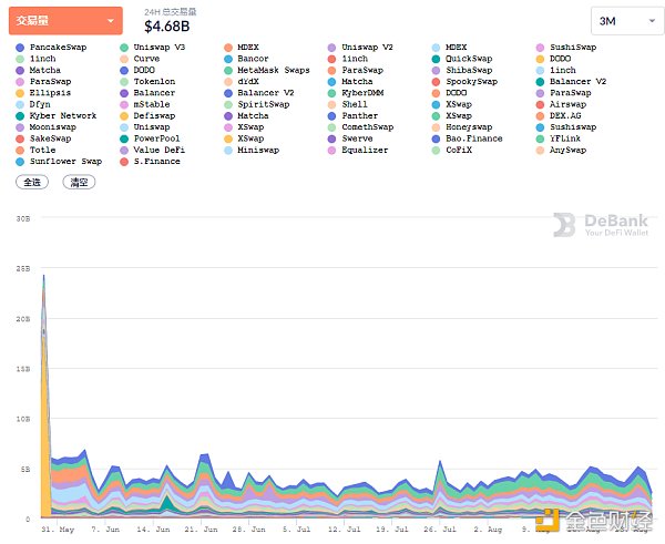 過去24小時去中心化交易所的交易量數據來源:Debank