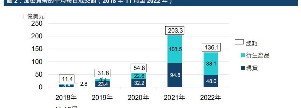 平均每日成交金額從2019年的318億美元增至2022年的1,361億美元;