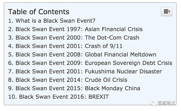 更明確表述的是,在《數據驅動的投資者》上有一篇文章題為“改變金融世界的9大黑天鵝事件”: