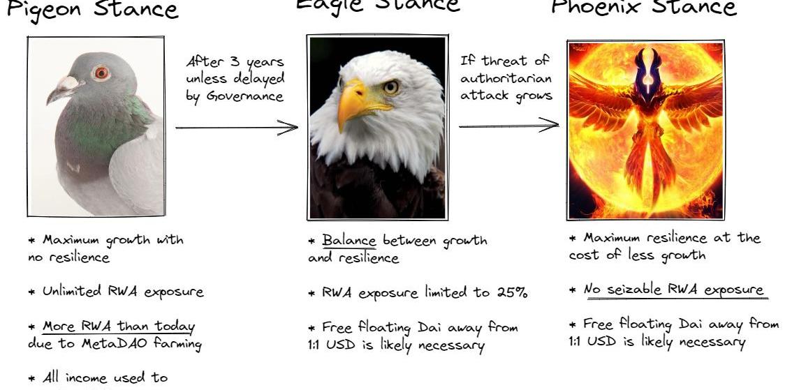 從鷹式策略開始,即RWA有被沒收的風險,那么促使DAI與美元脫錨成為一種自由浮動的資產則是有必要的。