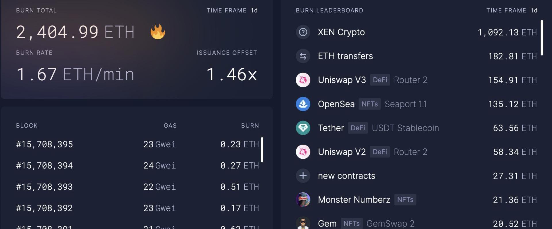 10月9日凌晨,以太坊Gas突然暴漲,以太坊瀏覽器顯示200gwei。尋其源頭,原來是各個社交媒體和社群正在不斷鑄造、傳播和討論項目XENCrypto。十二個小時過去,XENCrypto的鑄造熱度也并未消減。據ultrasound數據,截止目前通過XENCrypto銷毀的ETH數量達1092枚,占全網今日總銷毀量的45%。當前參與XEN的鑄造地址也達14萬。