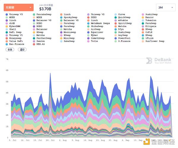 1900/1/1 0:00:001.DeFi總市值:1162.64億美元 DeFi總市值數據來源:Coingecko2.過去24小時去中心化交易所的交易量:36.
