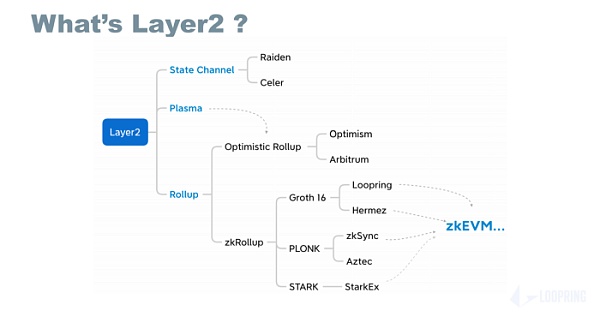 相對Optimisitic,ZKRollup的開發陣容更為龐大,包括Loopring,Hermez、ZkSync、Aztec、StarkEx和zkEVM等。其中Loopring協議已經歷經了3個版本,分別支持DEX交易、轉賬支付和AMM Swaps,在上個月,Loopring正式發布了支持Layer-2 NFT最新版本,此版本支持NFT在Layer-2上進行鑄造、轉賬和交易,以降低整體Gas成本。