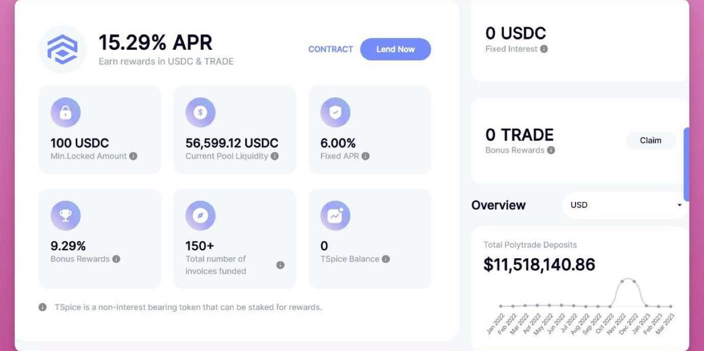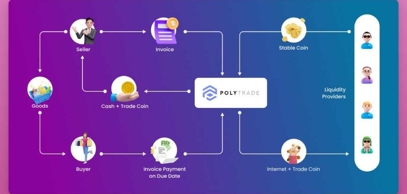 我經常關注知名風投的種子輪投資,這些項目中大多數還沒有token,據我推測,如果市場情緒改善,他們將很快推出token。以下是我觀察單上的50個項目。點擊了解3月份DeFi領域融資前3的項目:PolytradePolytrade是基于區塊鏈的貿易融資協議,Polytrade貸款給被稱為「發票保理」的傳統RWA類別。在其業務中,貸款人以折扣價從供應商處購買到期發票,然后收取全部發票金額,從而產生利潤或收益。