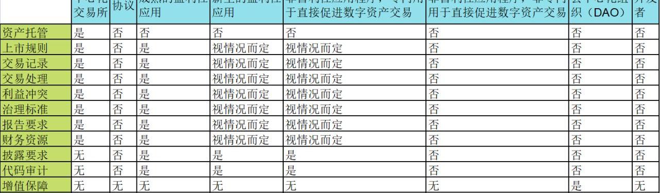 此外,我們還評估了《條例》對去中心化自治組織和web3協議和應用程序的開發者的適用性。附表A列出了我們的分析結果。中心化交易所