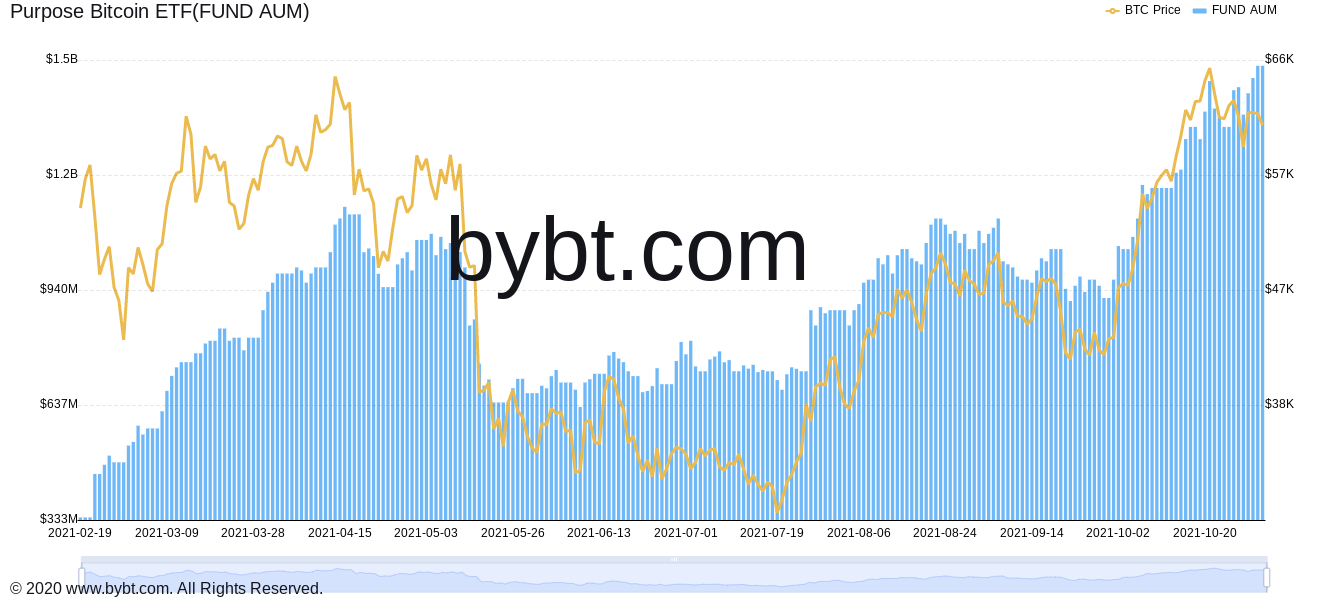 Purpose Bitcoin ETF資產管理規模 vs. BTC/USD圖表 來源:Bybt