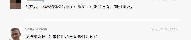 圖注:2021年11月中旬的以太坊2.0開發者電話會議記錄「但如果分片只做數據存儲,那么為了解決數據可得性問題,應該重新設定研究目標和可行方案,而不是直接使用原本用于做執行擴容的分片。」喵叔提出了自己的質疑。關于這個問題,國內以太坊社區曾經與Vitalik討論過,但對話并沒有結果,雙方沒有互相說服。畢竟這是項目路線圖量級的問題,幾句話不可能討論清楚,而且這個問題實在太遠了,以太坊2.0才剛剛進入第0階段,距離第2階段還有若干年。但現在有比分片更近也更棘手的問題:更換共識,以太坊會不會發生分叉?