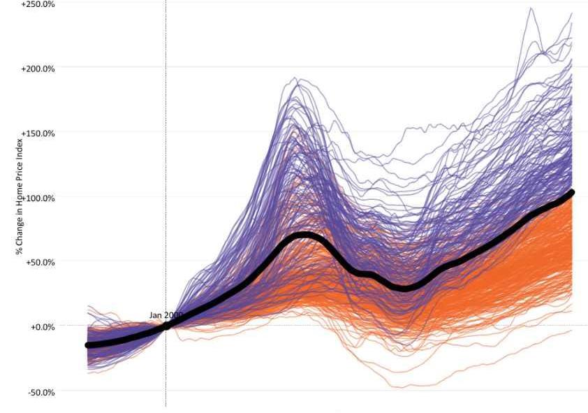 同時,相較美元而言,房地產資產價值是隨時間增長的。從下圖中可以看到,美國的平均房價已經超過2008年金融危機前的峰值。