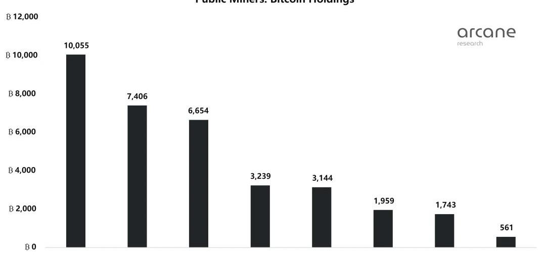 雖然一些上市礦企一直在拋售他們持有的大部分比特幣,但其他礦企仍未賣出任何比特幣。到目前為止,Marathon一直避免出售比特幣,現在是資產負債表上持有比特幣最多的公司,持有10,055枚比特幣,其次是Hut8,持有7,405枚比特幣。Riot賣出了6654枚比特幣,比平常略多一些,以6,654枚比特幣儲備排名第三,但與CoreScientific和Bitfarms的出貨量相差甚遠。