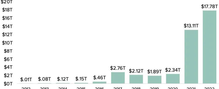 數字資產的價格僅代表了加密行業發展中的廣泛生態系統的一部分。盡管在市場不確定性期間,比特幣的價格隨著傳統金融資產波動,但其基礎網絡繼續按照設計運行,并有望在今年處理近18萬億美元價值的資產,高于2021年的13萬億美元,如下圖所示。墨西哥是匯款的第三大接收國,也是眾多轉向這一技術的國家之一。總部位于墨西哥的加密貨幣交易所Bitso在2021年第一季度至2022年第一季度期間跨境匯款增長了4倍。