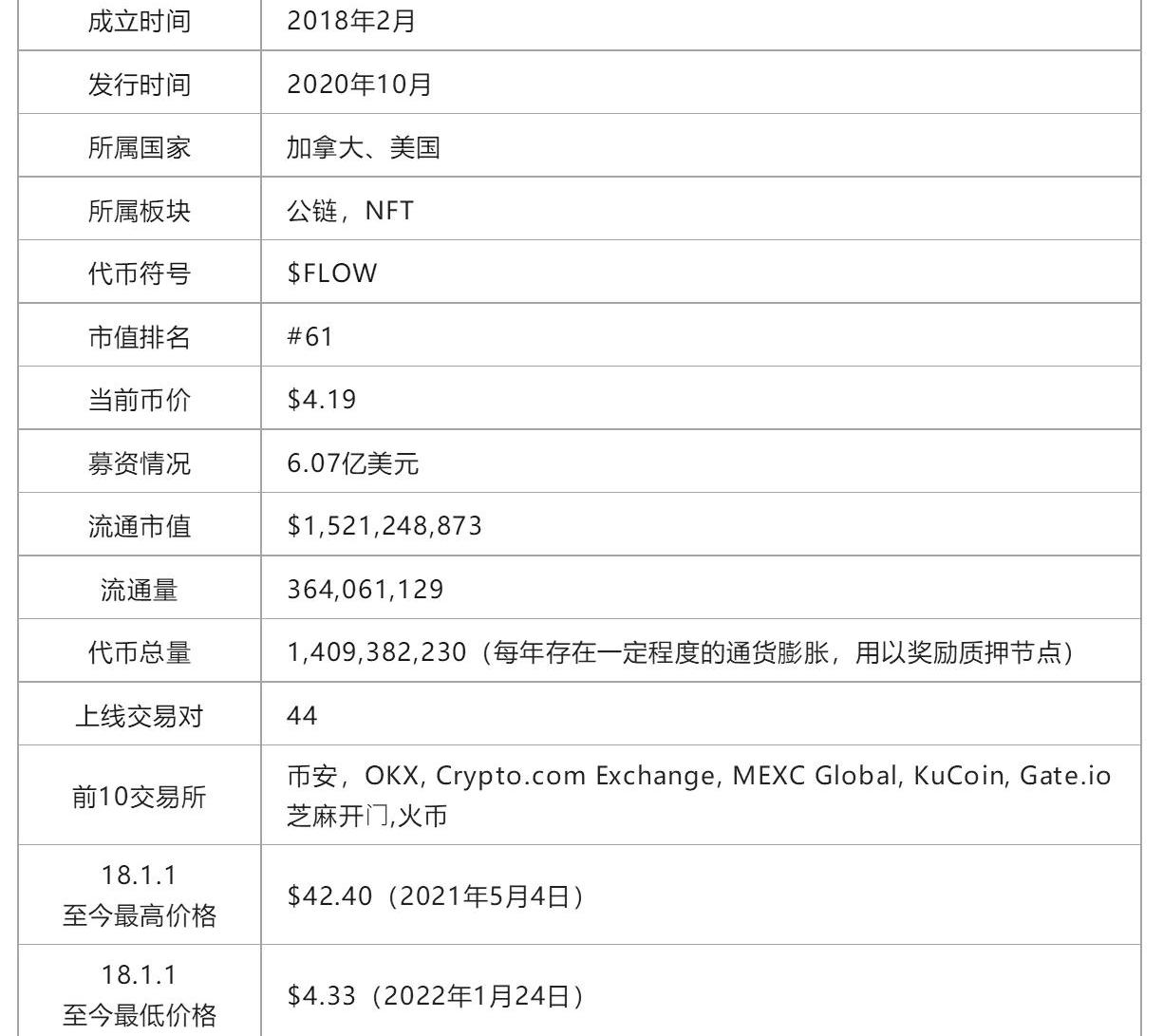 Flow是一個面向Web3應用NFT領域的公鏈,基于多角色架構,改善交易速度,創建對開發者友好、符合ACID標準的環境,目標是為區塊鏈游戲、應用和數字資產賦能。基本信息1