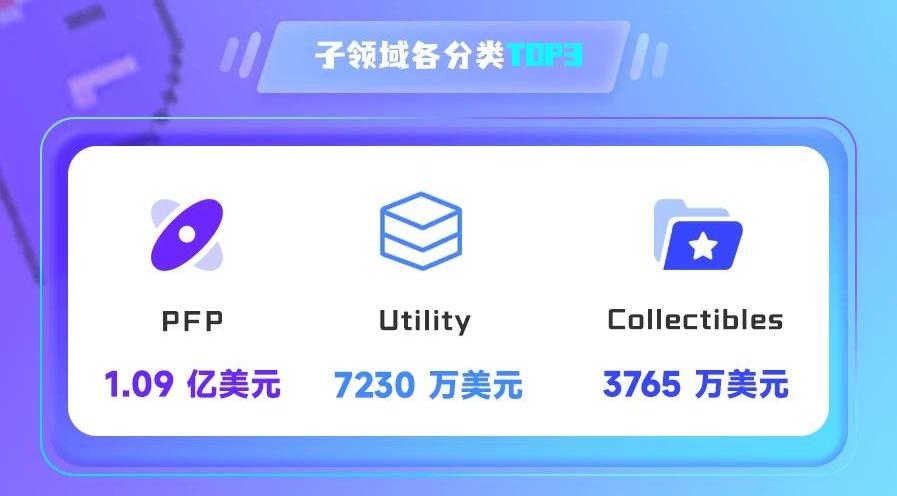 按過去24小時成交量,排前三的子領域分別為PFP、Utility、Collectibles。