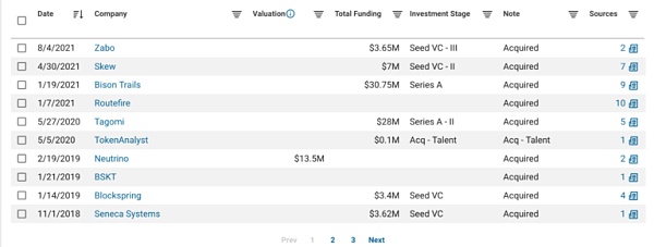 例如,在 2021 年 8 月,Coinbase 收購了 Zabo,這是一家賬戶聚合初創公司,使用戶能夠在 Coinbase 應用程序中查看第三方賬戶的余額和交易歷史記錄。Zabo 的 API 可以從多個加密交換、協議和錢包中提取數據。