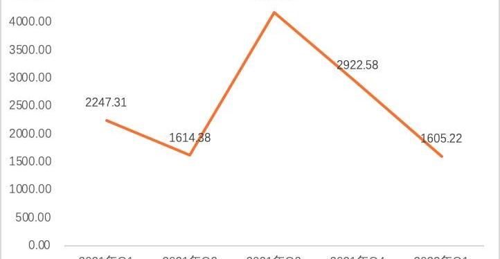 數據來源:01區塊鏈,零壹智庫從平均單筆融資金額看,2021-2022年Q1區塊鏈領域的單筆融資多屬于千萬美元級別。其中,2021年Q3平均單筆融資金額最高,為4169.70萬美元。此后兩個季度,平均單筆融資金額下降,2022年Q1,這一數值為1605.22萬美元。圖3.2021-2022年Q1區塊鏈領域平均單筆融資金額