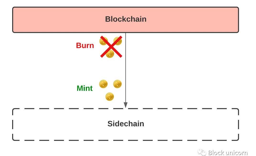 側鏈也已經存在很長時間了,而且很容易理解。簡而言之,側鏈是與主區塊鏈“掛鉤”的獨立區塊鏈。當我們將一個區塊鏈“掛鉤”到另一個區塊鏈時,這意味著我們可以在兩個區塊鏈之間移動資產。“單向”掛鉤是我們將資產從主區塊鏈移動到側鏈的地方,而不是其他方式。這是通過將主區塊鏈上的代幣發送到不可使用的地址來“燒掉”代幣,然后在側鏈上“鑄造”等價的代幣來實現的。