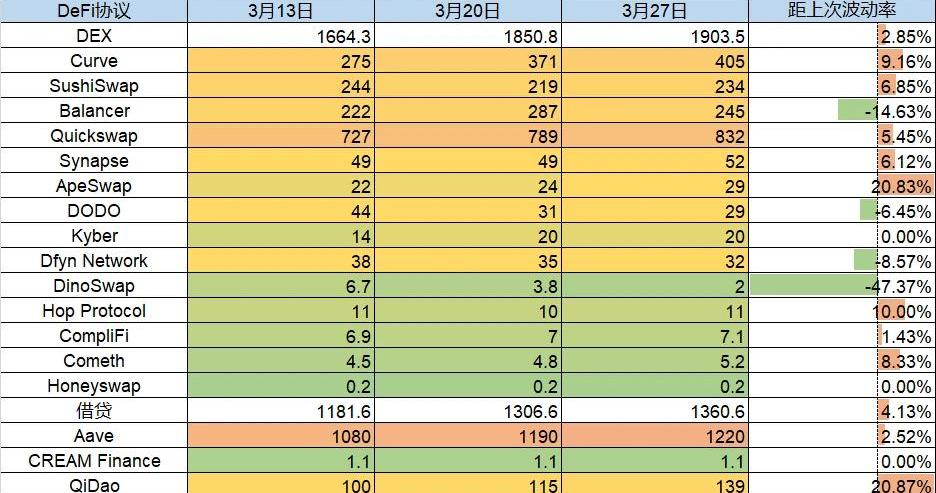 本周TVL出現4.78B的上漲,上漲幅度為2.26%,遠低于BTC和ETH上漲幅度,可能表明整體市場TVL增量較差和小幣種表現仍較差。各公鏈TVL占比情況