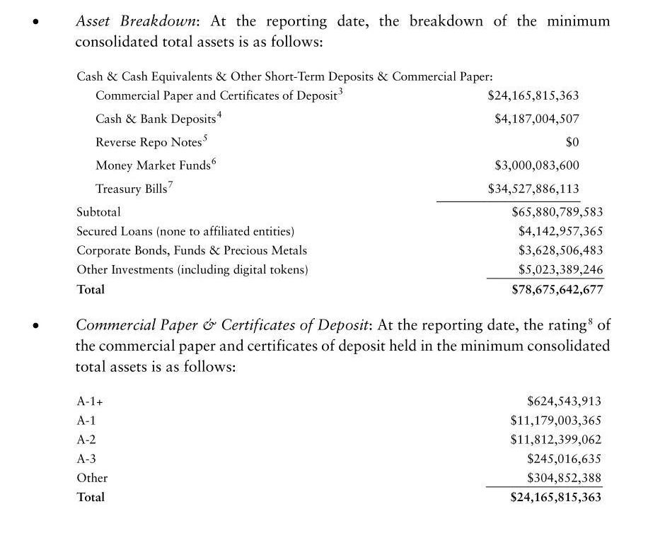 XRP/HKD+2.15%作者:胡韜,鏈捕手USDT發行方Tether今日公布2021年第四季度綜合儲備報告,顯示該公司總資產為786.7億美元,而與數字代幣相關的負債約為785.3億美元,并表示綜合資產超過其綜合負債,以證明USDT擁有足夠的資產儲備。從2021年2月起,作為與紐約總檢察長辦公室達成的1850萬美元法庭和解協議的一部分,Tether必須每季度披露其儲備金。這是Tether去年以來第三次公布儲備報告。與去年9月公布的儲備報告以來,Tether的儲備構成發生了顯著變化,商業票據與定期存單下降約21%至241.6億美元,現金和銀行存款下降42%至41.87億美元,而其對貨幣市場基金的分配增加200%至30億美元,美國短期國庫債券也增長77.6%至345.2億美元。該報告還顯示,Tether價值139.3億美元的商業票據的到期期限為0-90天,99.4億美元的期限為91-180天,8.23億美元的期限為181至365天。Tether將以上資產初步統一分類為現金和現金等價物及其他短期存款和商業票據,共約658億美元。此外,擔保貸款(不提供給附屬實體)約4.1億美元,公司債券、基金和貴金屬約36.2億美元,其他投資(包括數字代幣)約50.2億美元。